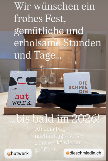 am freitag, 16.1. ist das "hutwerk" nur am nachmittag offen mit der schmiedin.